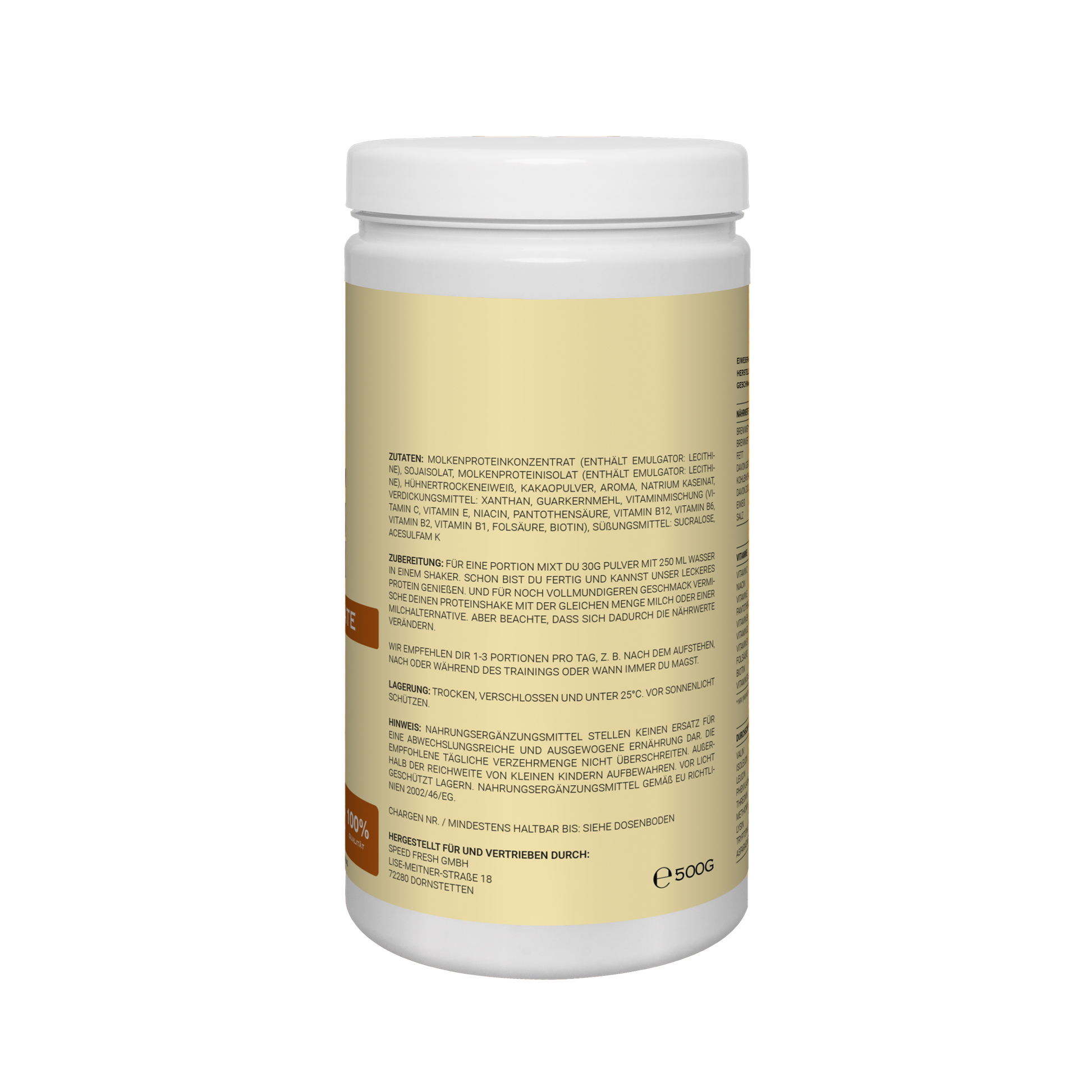 Wir legen Wert auf eine natürliche Zusammensetzung, ohne unnötige Zusatzstoffe und setzen auf höchste Qualitätsstandards bei der Herstellung. Jede Portion liefert dir 23 g hochwertiges Eiweiß sowie wertvolle BCAAs und essenzielle Vitamine: B1, B2, B6 und B12, die deinen Energie- und Proteinstoffwechsel optimal unterstützen.